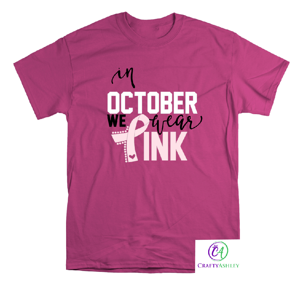 Show your support during Breast Cancer Awareness Month with our In October We Wear Pink shirt. Whether you’re joining a breast cancer walk, fundraiser, or simply honoring loved ones, this shirt is the perfect way to stand united.