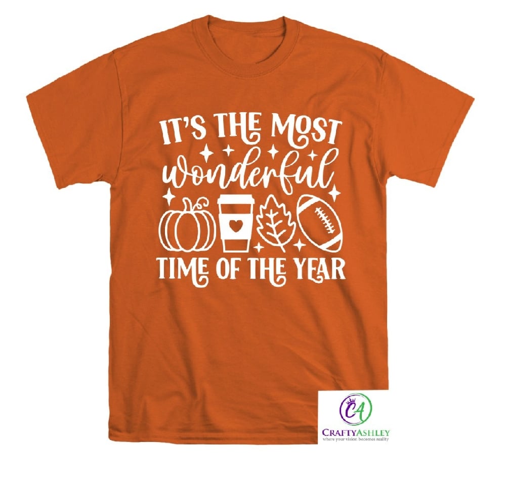 Celebrate autumn in style with this cozy “Most Wonderful Time Of The Year” fall graphic tee. Perfect for pumpkin patch visits, sipping cider, or just enjoying crisp fall days, this shirt is a must-have for your seasonal wardrobe.